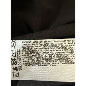 This elegant black satin dress features a modern asymmetrical neckline, a puffed short sleeve, and a flowy ruffled hem. Designed with a flattering evasé silhouette, it offers a sophisticated yet feminine style suitable for various formal or semi-formal settings. Crafted with a polyester-elastane blend for comfort and durability. Size US 10 but fit is very roomy. Pit to pit is 20.5"; length from shoulder to hem 53".
