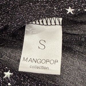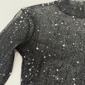 Mangopop Black Sheer Top with Silver Sparkle Stars & Silver Metallic Thread.