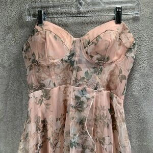 Maniju Floral Dress Women's Medium Blush Sheer Corset Slit Maxi Cottage Whimsy
