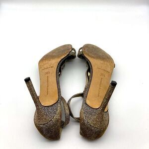 Manolo Blahnik Dixie Metallic T-Strap Heels Sandals Size 35,5 Made in Italy