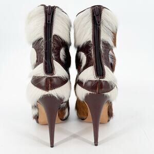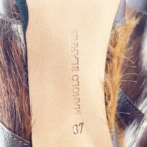 Manolo Blahnik Y2K Retro Aziz Cowhide Fur Leather Pointed Toe Heeled Boot IT 37