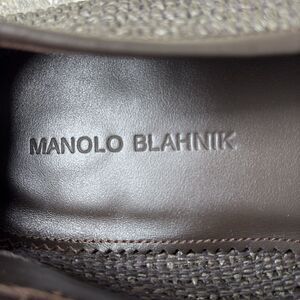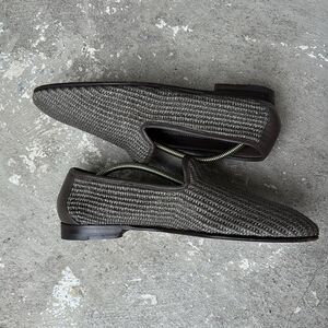 Woven slippers handmade in Italy check out the pictures. They are in new like condition. Color is gray with a hint of khaki green. Shoehorns not included.