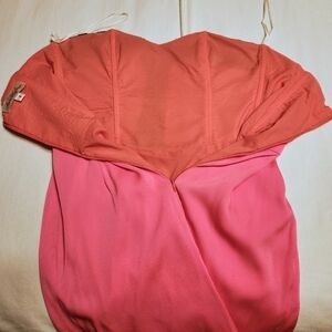 Mara Hoffman fitted strapless mini dress in a pink silk blend with beaded detail.