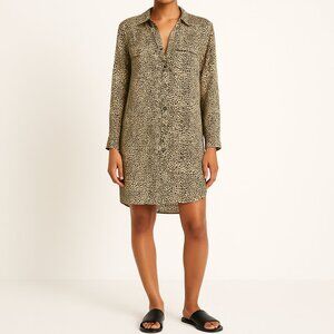 Mara Hoffman Silk Leopard Animal Print Button Down Mini Dress