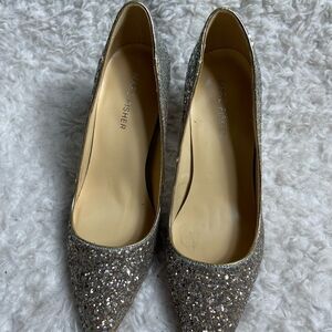 Marc Fisher Garicky Glitter Ombré gold and silver slip on heels pointed toe SZ8M