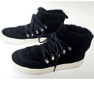 Marc Fisher High Top Sneakers Booties 7.5 Black Suede with Shearling