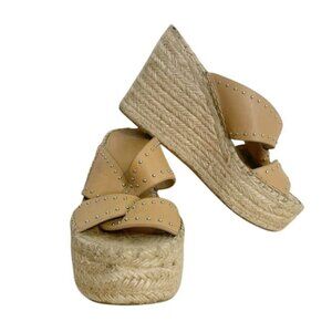 Marc Fisher Size 7 Wedge Espadrille Studded Beige Camel
