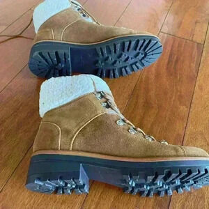 Show off cozy vibes with the Isalia bootie from Marc Fisher. This ankle boot features a sherpa tongue with hiker-inspired laces for versatile cool weather style.
