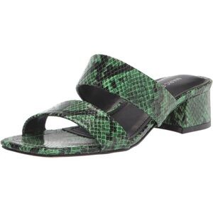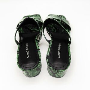 Marc Fisher Yori Snake Block Heel Sandals in Green/Black