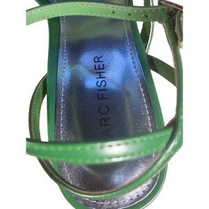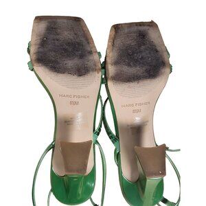 Marc Fisher Zalay Pyramid Heels Women Sz 8.5 Green Square Toe Ankle Strap Party