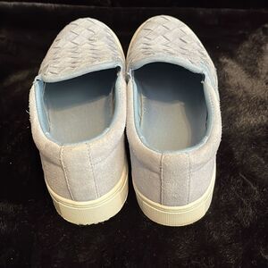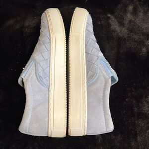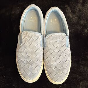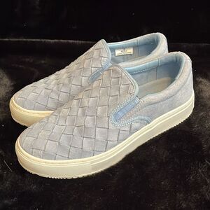 Marc Fisher light blue suede slip-on sneakers with a woven design. Comfortable and trendy. Great used condition