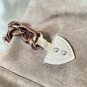 Glue showing on one of the leather tabs where chain is connected as seen in photos