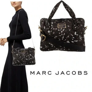Marc by Marc Jacobs leopard crossbody computer bag with gold tone hardware enameled logo Velcro patch pocket at back knotted double handles & detachable strap padded faux fur lining minor wear Hight 11” width 14” depth 2.” Strap drop 5” shoulder strap 25” adjustable shoulder strap is replaced The dimensions are based on approximately measurements before placing an order please check take a moment to view all photos using feature for a closer look