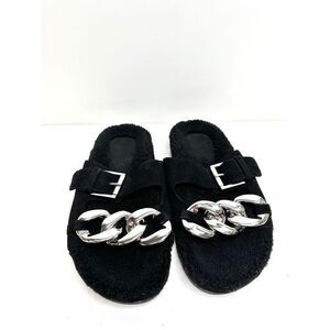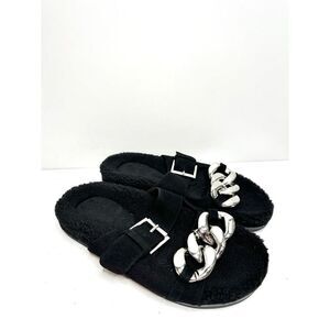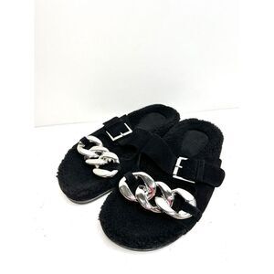 Marc Fisher Sandals Womens Size 6 Leather Black Fresno Shearling Sherpa Slides