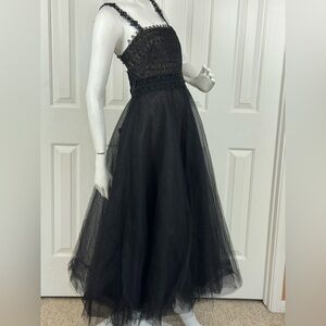 Chic black tulle dress with a fitted bodice and flowing skirt. Perfect for formal occasions. Gorgeous dress new with tags