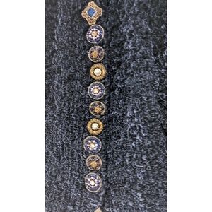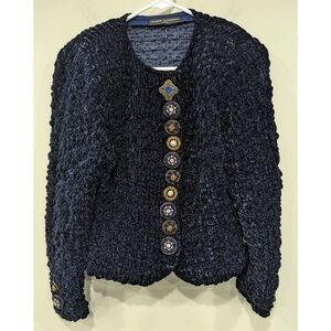 Marie-Martine Paris Blue Crinkle Jeweled Button Cardigan Size Small