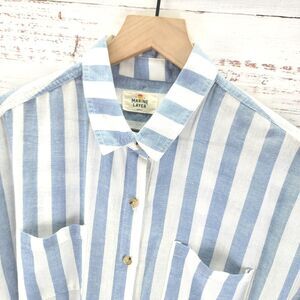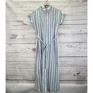 Marine Layer Womens S Linen Cabana Stripe Simone Button Front Dress Blue/White