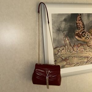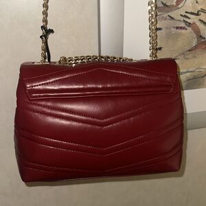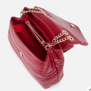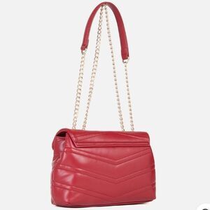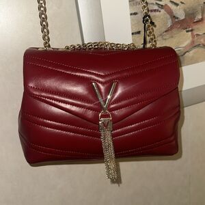 Mario Valentino Cherry Red Gold Tone Privilege Flap Chan Strap Purse