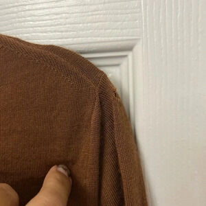 There is a small hole on the right shoulder see last picture but other than that it is in perfect condition