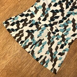 • Other information: Marni blouse with multicolored and abstract pattern throughout. Scoop neckline. Sleeveless. Pleated peplum hemline. Exposed gold back zipper. Simple, feminine, and cute. Blouse is from the Marni Winter Edition 2012 collection.