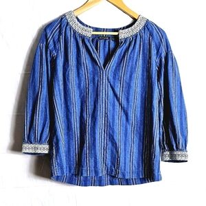 Massimo Dutti Striped Cotton Blend Embroidery Women's Blouse Size S