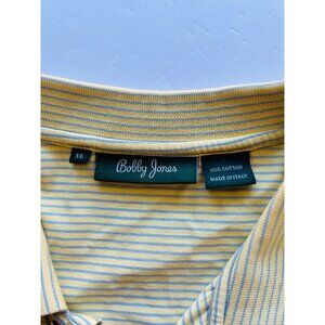 Bobby Jones Men's XL Yellow Striped Polo Shirt W/ Embroidered Golf Logo 100% Cotton Made In Italy