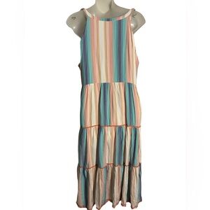 Matilda Jane Women’s Striped Multicolor Cotton Tiered Maxi Dress Large