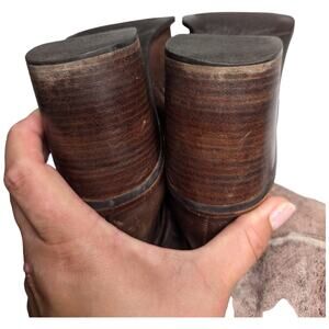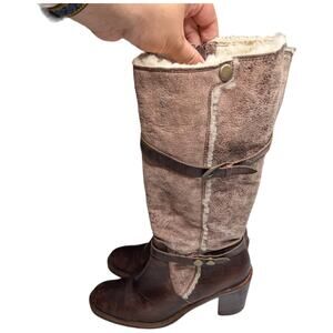 Matisse Brown Leather Beige Suede Shearling Lined Block Heel Tall Boots 9.5