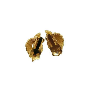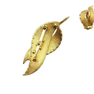 Matte Gold Tone Matching Leaf Brooch Clip Earring Set Vintage Mid Century