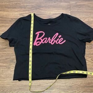 Mattel Barbie Cropped Crew Neck T-shirt Black With Barbie in Pink Writing Small