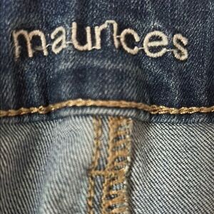 These blue skinny jeans from Maurices feature a medium-dark wash with subtle fading and natural wear patterns, offering a stylish and comfortable fit. The lived-in look adds character, making them perfect for casual outings. Their versatile style ensures they pair well with various outfits.