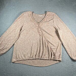Maurices Brown/Tan Neutral Faux Wrap Eyelet Trim Long Sleeve Sweater Top