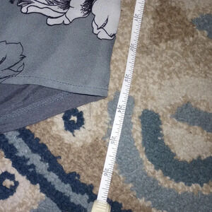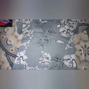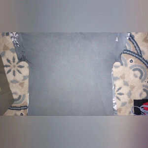 Women's TShirt Blouse. Front Sheer Material Floral pattern. The Back of Shirt is a Solid Gray Cotton material.