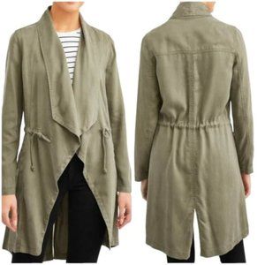 Max Jeans Vetiver Khaki Olive Green Long Drape Front Collar Boho Jacket…
