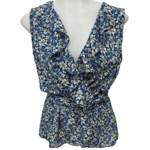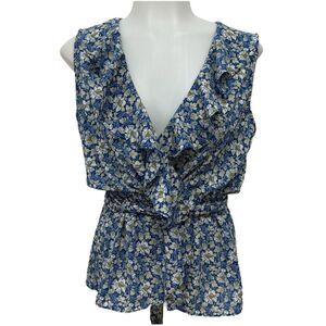 Max Studio Floral Ruffle Sleeveless Wrap Top Size S