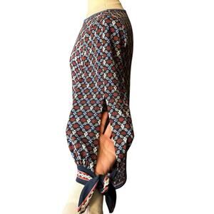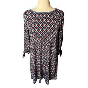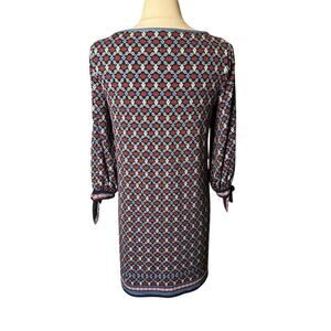 Max Studio Geometric Shift Dress Small Red Blue Print Open 3/4 Sleeve