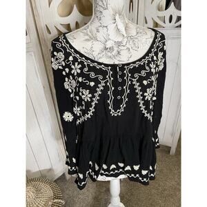 Meadow Rue Anthropologie Peasant Top Embroidered Black White Boho Sz Medium