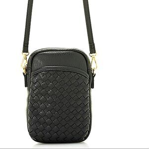 Mint condition, trendy woven front with gold toned hardware. Fits your cell phone, keys, wallet and more, great for travel too! Detachable & adjustable 44” strap!