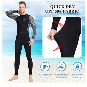 Experience superior comfort and style with this Dive & Sail Men's Thin Wetsuit. offers UV protection and rash guard. Thin spandex, quick dry material. Featuring a sleek black design with vibrant green accents, this wetsuit is perfect for your aquatic adventures. NWT, NEVER USED AND IN EXCELLENT CONDITION!!!