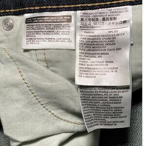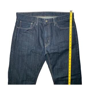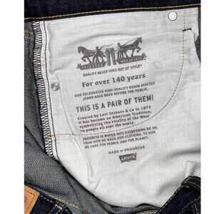 These Levi's 505 jeans are in excellent pre-owned condition, worn only once or twice. They feature a dark wash denim, almost black in color, and a comfortable relaxed fit.