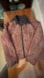This stylish lightweight denim jacket features gold tones with a burgundy and blue color palette, perfect for mild weather. Its textured fabric and brocade design adds an unexpected touch of classic! The button-up design (it is missing the middle button ) adds a touch of ease. The jacket is semi reversible. A prominent collar adds a distinctive flair!