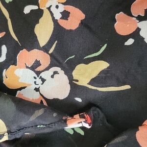 Merona | Black Orange Yellow Cream Floral Ruffle Neckline Dress.