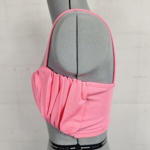 Meshki Jordan Ruched Front V Neck Bralette Crop Top 2 Bundle Set Pink & Stone XS