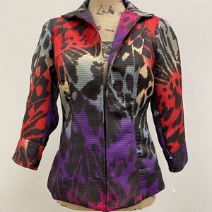 Like new Mesmerize quilted texture multi colored Falcon suit jacket. EUC, great shape, size small, hook and eye closure, see pictures for details.