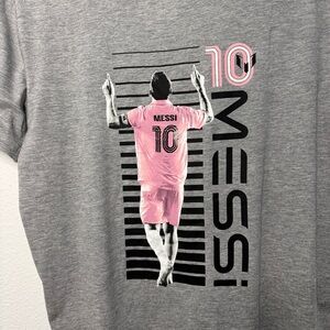 Messi authentic logo number 10 soccer player gray Tshirt size M NWT