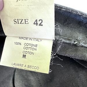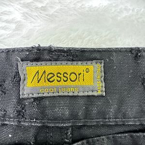 These rare Messori men's jeans feature a solid black cotton embroidered fabric. These designer jeans from Italy boast a distressed look for a unique and stylish appearance, suitable for all seasons. The Messori brand represents comfort and quality in this fashionable piece of men's clothing.