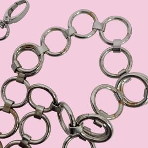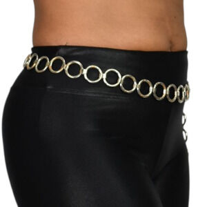 Metal Chain Belt Hoops Loops Circle O Ring Waist Silver Tone One Size Adjustable