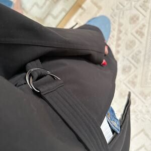 Details: Metro x A Division By Kristen Blake Trench Coat - Size: M - Color: Black - Material: Polyester, rayon, spandex - Backing and lining: Polyester - Style: 74242 NG12111K - Features: Chest pockets - Snap buttons - Belted