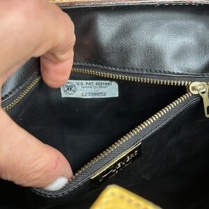 This is a beautiful Meyers Croc Embossed Leather Mustard Yellow Crossbody Top Flap Feed Bag Purse. 28” adjustable coordinating strap where it can be worn crossbody, with a few extra holes punched thru at any shoe repair can be worn on the shoulder or wrapped around the waist for an interesting waist bag look. Flat back, structured top flap closes with a magnetic snap. Full black leather interior with a wall zipper compartment. 9”W x 8”H x 5”Deep.