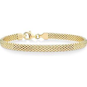 Classic Italian Style: Add a dash of glam to your everyday look with this 18K gold over sterling silver 5mm Mesh bracelet. Simple interlocking links create a flexible movement and shiny finish for a modern and polished look. Domed in form, it is not too chunky, with just the right volume for a cool feminine silhouette. It's the perfect bracelet for daily wear, whether with casual jeans and t-shirt or a dressy attire. Wear alone or stacked and layered with other pieces.